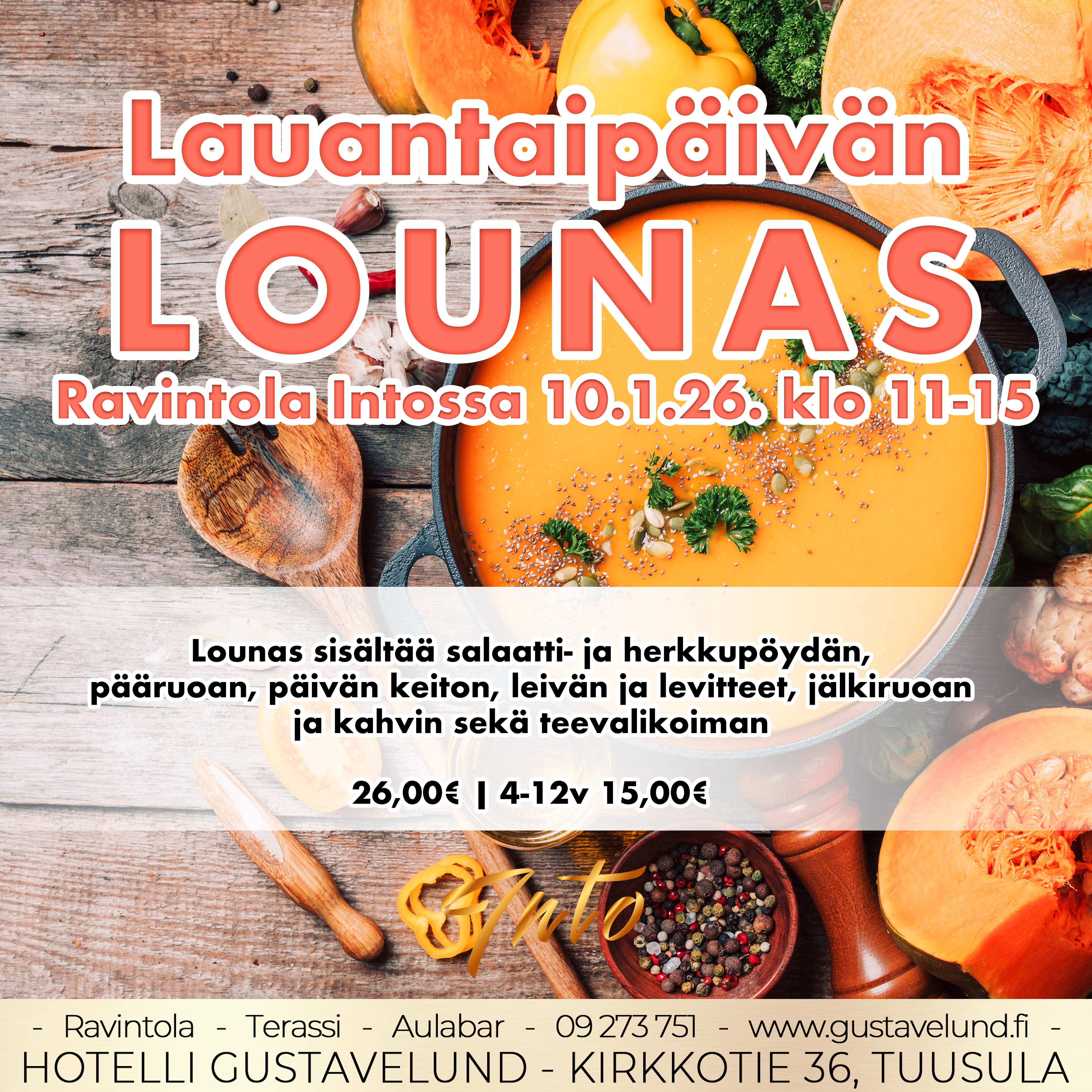 GUSTAVELUND ON SULJETTU 26.12.- 6.1. Avaamme loppiaisen jälkeen 7.1.2026. Tervetuloa!