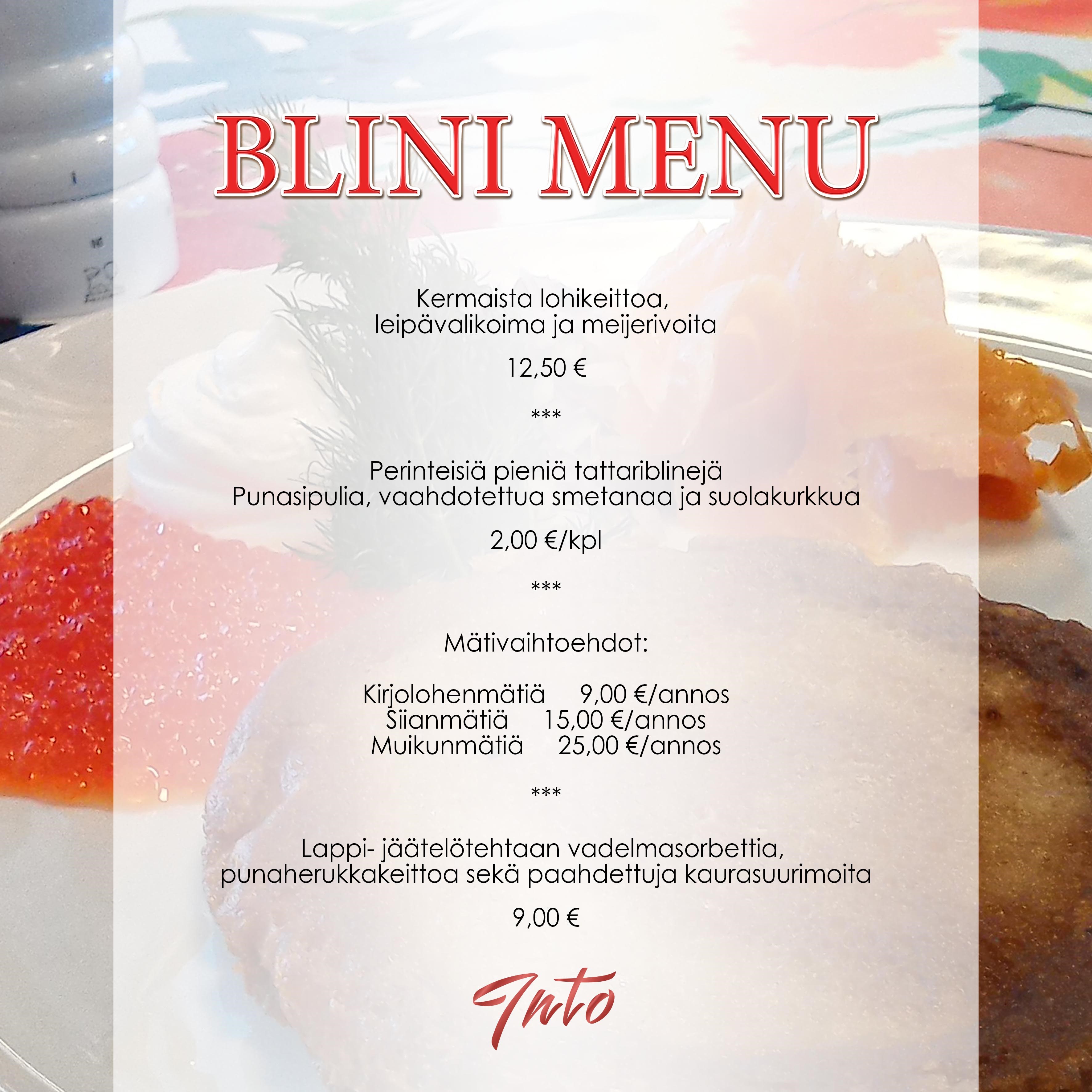 BLINIMENU tarjolla torstai - lauantai klo 14-20