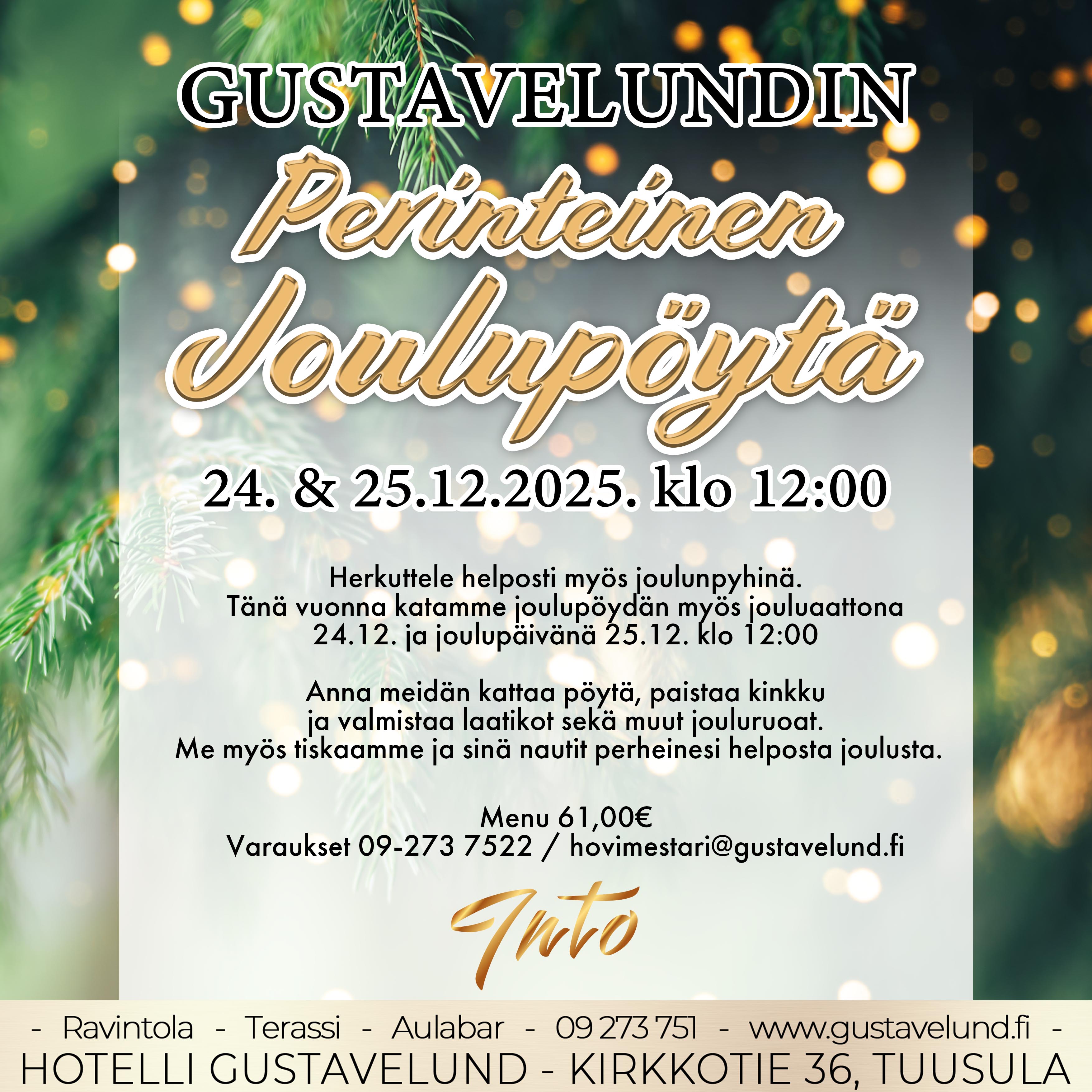 Ryhmävaraukset joulupöytään myyntipalvelusta (09) 273 7555 sales@gustavelund.fi