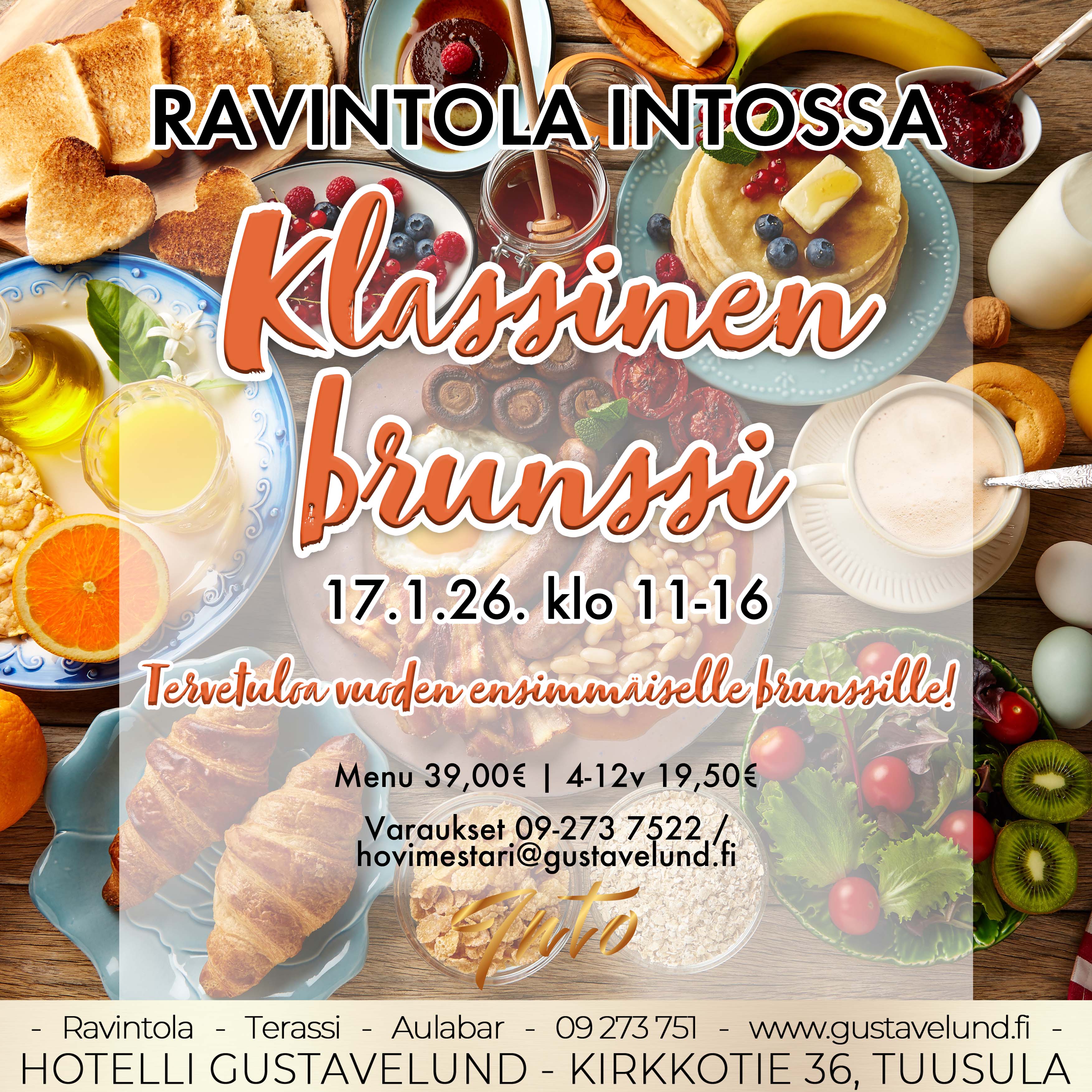 GUSTAVELUND ON SULJETTU 26.12.- 6.1. Avaamme loppiaisen jälkeen 7.1.2026. Tervetuloa!